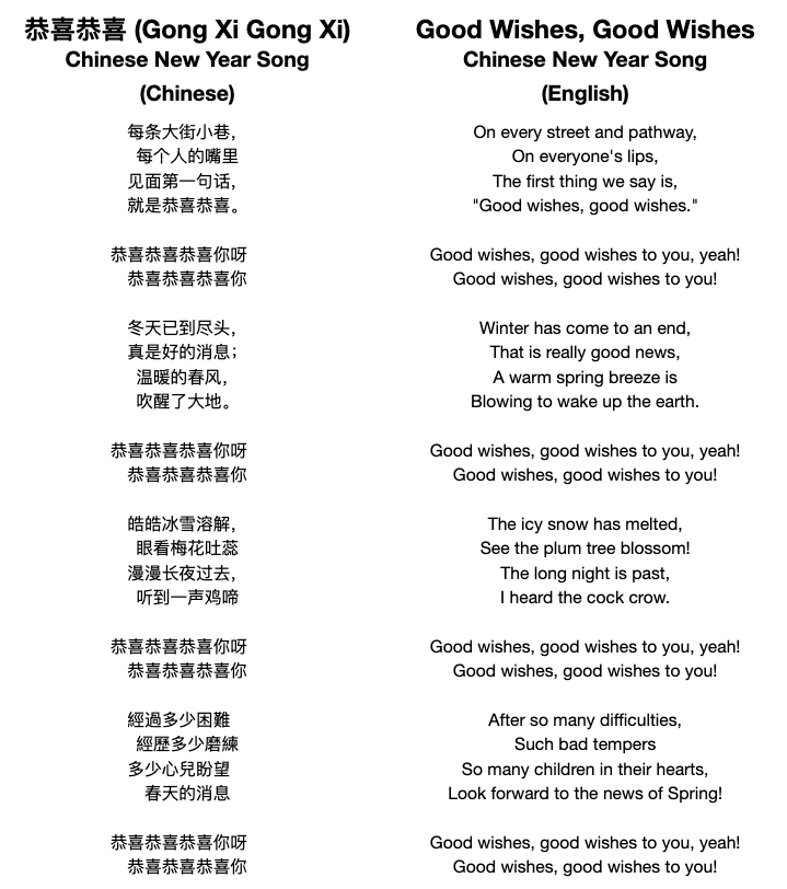 So how did this wartime song become associated with the Lunar New Year? The song’s title, ‘Gong Xi, Gong Xi’ is a common New Year greeting. The lyrics of the song also include many mentions of the arrival of spring, which is symbolic of the arrival of the New Year. Learning about the history behind the song sheds new light on many of the lyrics. I’ve included them below:
